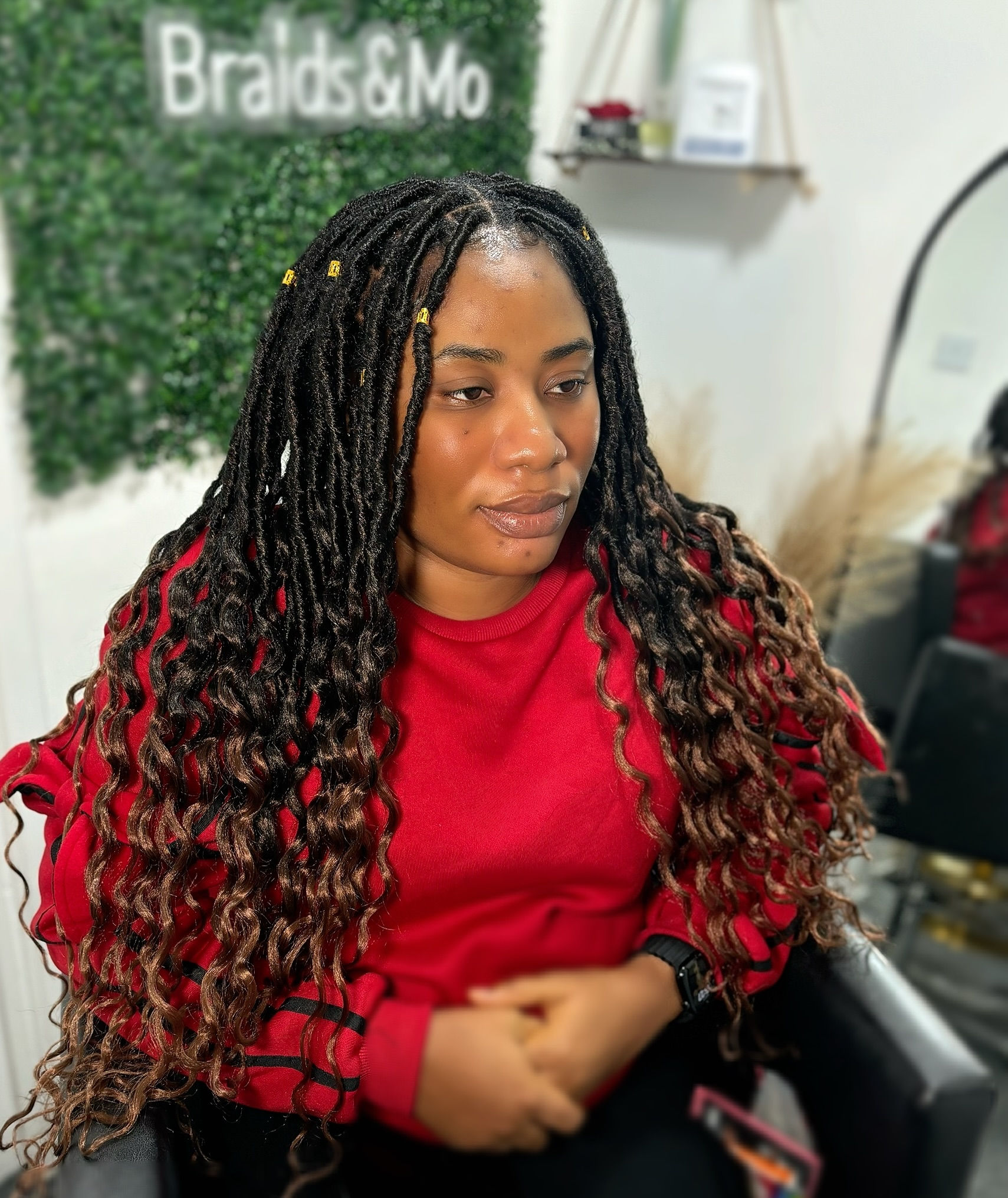I exclusively work with Xpression brand hair, ensuring the best quality for your styles, all included in my pricing. For those seeking boho/goddess styles, high-quality synthetic curly pieces are provided as well. For boho/goddess braids, please select the add-on option to your selected braids size. Please note that our prices are based on mid-length styles (price remains unchanged for shoulder length) so don't forget to select add-ons for extra length! I have included a braid length chart to aid you in choosing your preferred length.